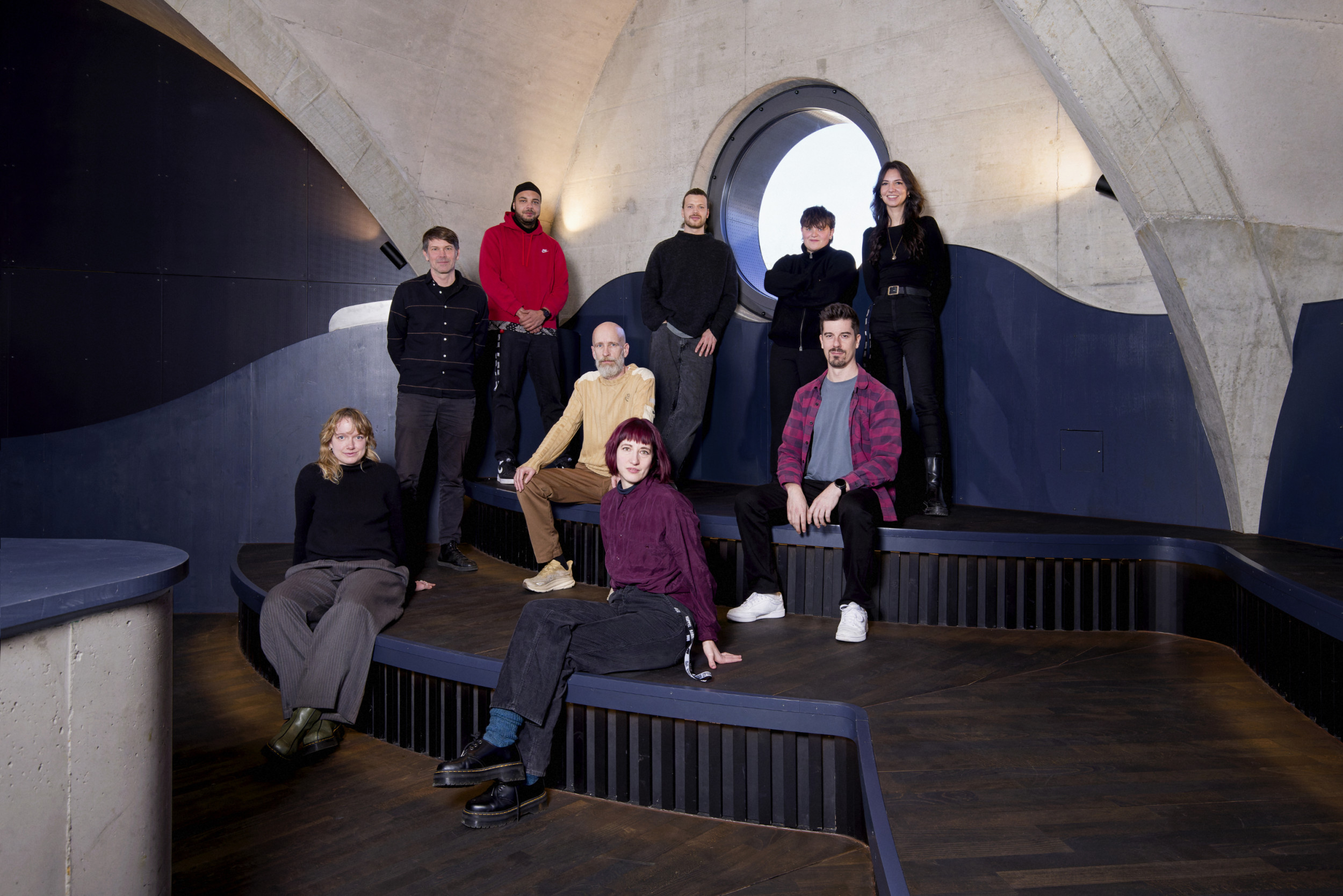 v.l.n.r: Julia Brun, Sandro Bernasconi, Kelvin Beyeler, Jean-Marc Lüthy, Eliane Hofstetter, Severin Belinger, Betty Achterberg, Luka Wartmann, Melissa Etienne. Foto: Flavia Schaub Jean-Marc Lüthy